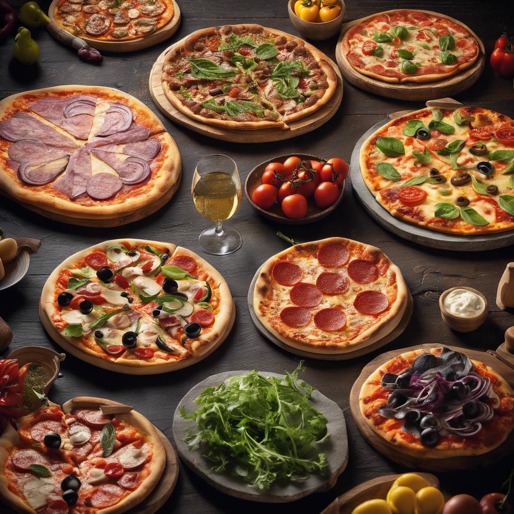 tomate, fromage, roquette, tomates cerises, jambon cru, parmigiano, burrata, olives, crème balsamique