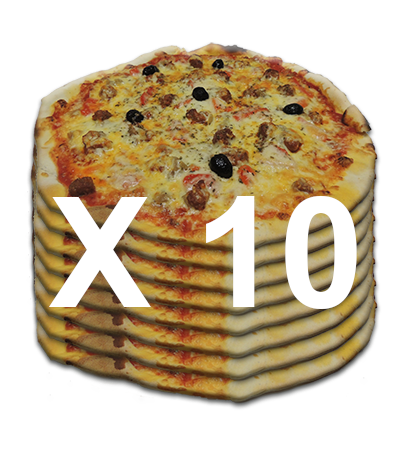 tomate, jambon, fromage, émincé de poulet, viande de boeuf, oeuf, merguez, lardons, oignons, poivrons