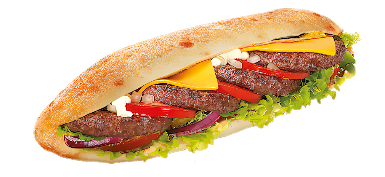 Steack Black Angus 150g, salade, tomate, double bacon, double cheddar, sauce Américaine, oignons rouges, sauce BBQ